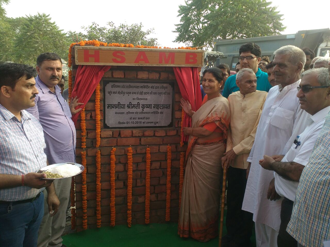 सोनीपत,( आदेश त्यागी घसौली) हरियाणा कृषि विपणन बोर्ड की चेयरपर्सन एवं पूर्व मंत्री कृष्णा गहलावत ने मेहंदीपुर में यमुना तक 60 लाख रुपये की लागत से बनाये जाने वाले सड़कमार्ग की आधारशिला रखते हुए कहा कि तीव्र विकास के लिए सड़कों का बेहतरीन होना आवश्यक है। इसलिए राई क्षेत्र ेमें सड़कों का जाल बिछाया जा रहा है। अच्छी परिवहन सुविधाएं व्यापार को बढ़ावा देती हैं जिससे हर क्षेत्र में विकास होता है।