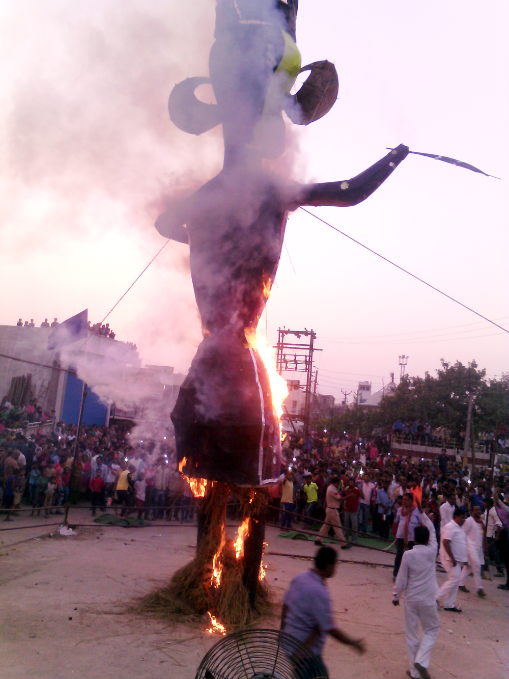 शहर के प्राचीन सिद्धपीठ श्री ठाकुर द्वारा पंचायती मंदिर बड़ा हलवाई हट्टा द्वारा कामी रोड स्थित रामलीला मैदान में रावण, कुंभकरण व मेघनाद के पुतले बनाए गए हैं। समिति के प्रधान विजय गौतम ने बताया कि रावण का 55 फुट व मेघनाद और कुंभकरण के 52-52 फुट के पुतले बनाए गए थे। रावण दहन कार्यक्रम में कैबिनेट मंत्री कविता जैन व राजीव जैन ने मुख्य अतिथि के रूप में शिरकत की। शिव शक्ति सेवा समिति की तरफ से पुरानी अनाज मंडी में करीब 25 फुट का रावण दहन किया गया। इस मौके पर रामलीला का मंचन भी किया गया। जिसमें सुरेश मित्तल ने राम, श्याम वशिष्ठ ने लक्ष्मण, प्रताप ने रावण, मत्थु माथुर ने हनुमान, संजय वर्मा ने मेघनाथ, आशीष जैन ने विभिक्षण व संजय गोयल ने अंगद का रोल बेखुनी निभाया।