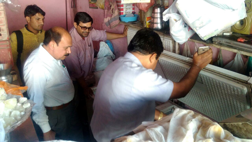 स्वास्थ विभाग की टीम ने मिठाईयों के सैंपल लिए : खरखौदा में एक दुकान में रखी मिठाईयों के सैंपल लेती टीम।