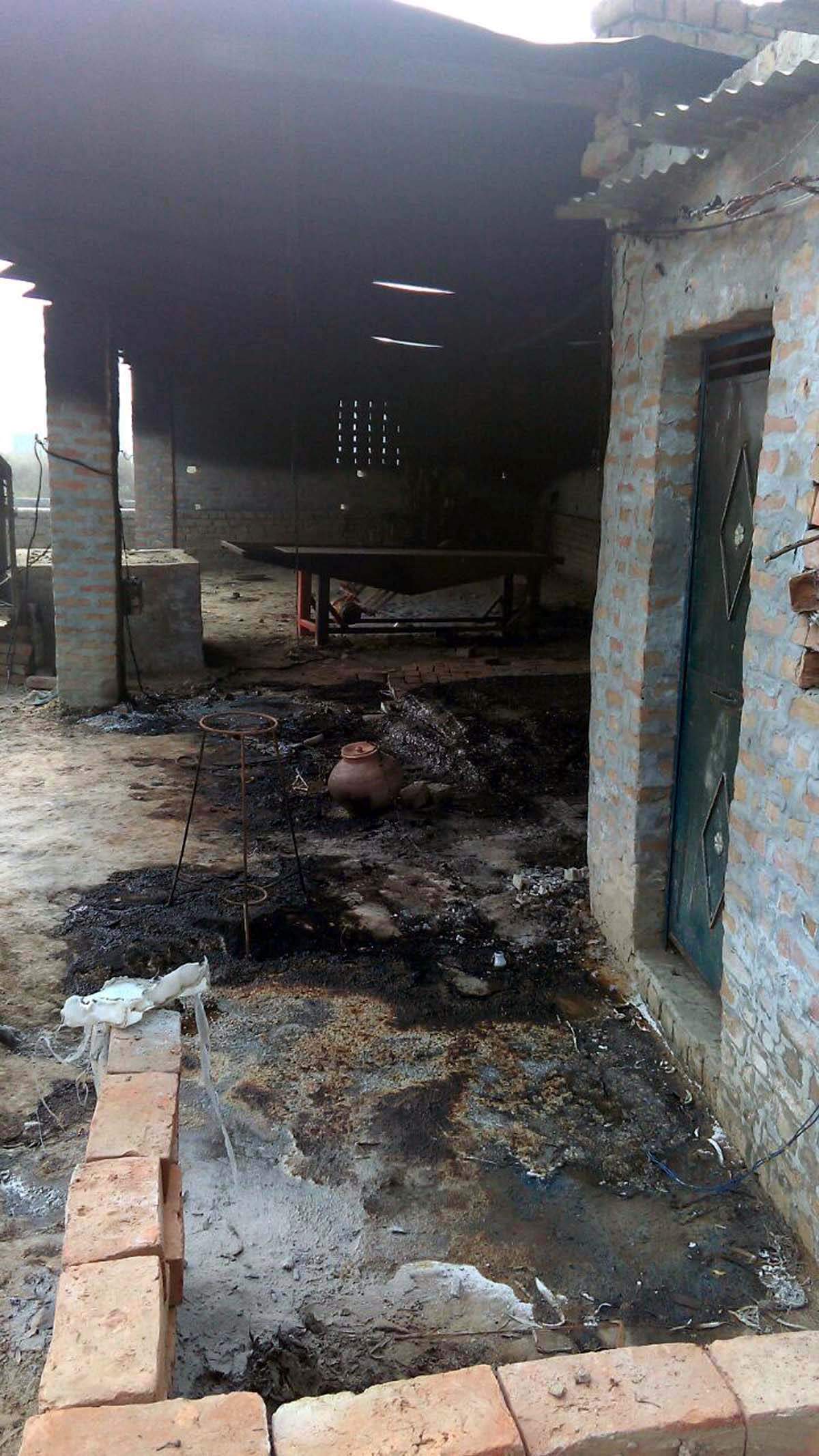 सोनीपत। फैक्ट्री में आग लगने के बाद राख के ढेरइंटरलॉक टायल फैक्ट्री में आग, लाखों का नुकसान