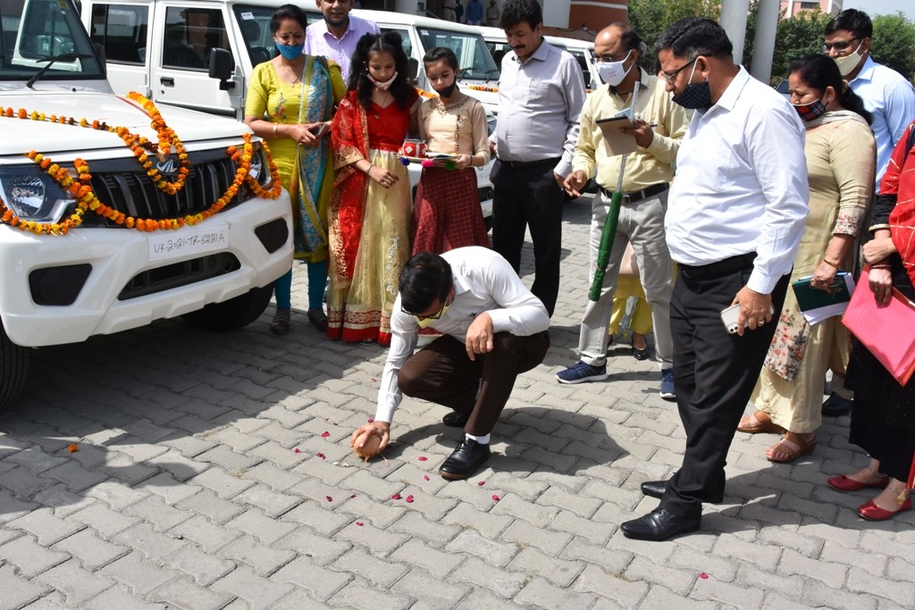 उन्होंने लघु सचिवालय परिसर में नारियल फोडक़र और झण्डी दिखाकर